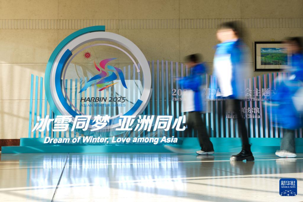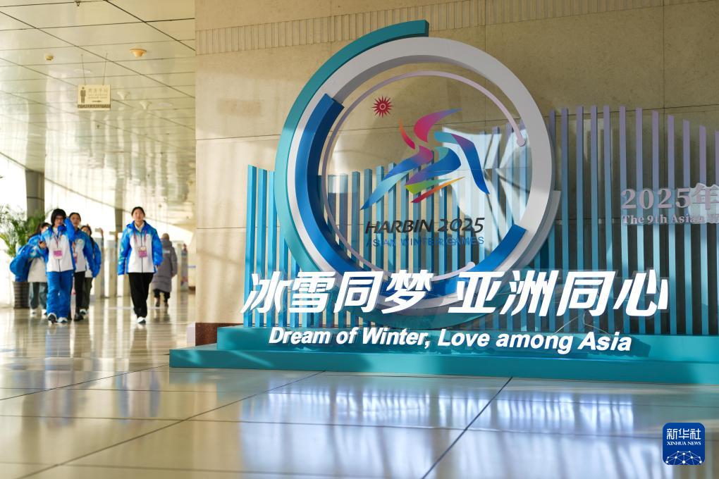 這是2月5日拍攝的第九屆哈爾濱亞冬會(huì)主新聞中心外景。
