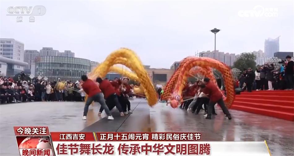 在江西吉安,一場(chǎng)元宵龍舞展演展示活動(dòng)正在熱鬧上演。來(lái)自全省22支龍燈代表隊(duì)及吉安本土近40個(gè)國(guó)家級(jí)、省級(jí)非遺項(xiàng)目輪番登場(chǎng),把節(jié)日氛圍瞬間點(diǎn)燃。點(diǎn)睛后的300米長(zhǎng)龍精神抖擻、神采奕奕,160多名表演者舞出了巨龍的精氣神,歡呼聲、喝彩聲此起彼伏。造型精美、各式各樣、色彩斑斕的花燈,吸引了許多市民駐足、拍照留念。