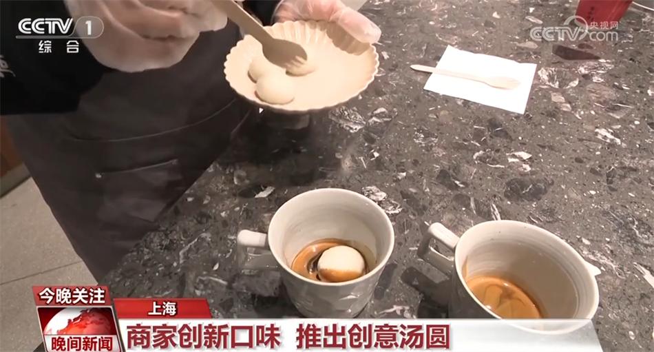 今年,不少商家還追求“新奇”與“融合”。在上?;春V新返倪@家咖啡店,推出的一款“美式湯圓”這幾天受到不少顧客的關(guān)注。所謂“美式湯圓”,就是湯圓泡在了咖啡里,顧客點(diǎn)單后,后廚工作人員開(kāi)始現(xiàn)煮芝麻湯圓,前臺(tái)咖啡師則同步萃取濃縮咖啡。待湯圓煮好以后,以濃縮咖啡液作底,放入軟糯的白湯圓,再撒上“靈魂輔料”桂花碎,一杯充滿(mǎn)混搭氣息的“美式湯圓”就做好了。