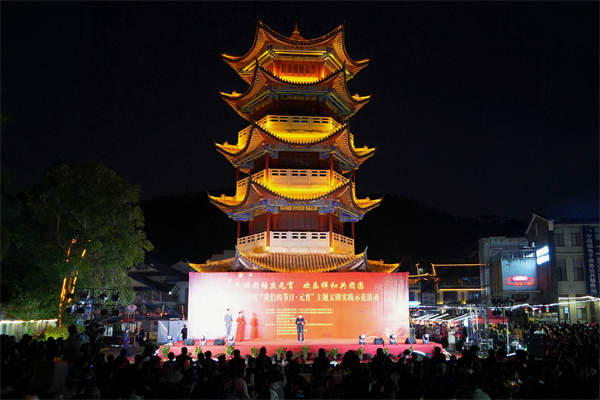 在普洱古鎮(zhèn),豐富多樣的文明實(shí)踐活動(dòng)同步開(kāi)展,書(shū)法愛(ài)好者以筆為媒,飽蘸深情,精心書(shū)寫(xiě)并送上承載著“祝福”“平安”“健康”的墨寶。當(dāng)社會(huì)主義核心價(jià)值觀、傳統(tǒng)文化以及移風(fēng)易俗理念巧妙融入謎面時(shí),群眾穿梭于燈謎中,答得不亦樂(lè)乎。此外,燈籠制作、糖畫(huà)制作、烤茶、拓印、染紅蛋、舂粑粑等體驗(yàn)環(huán)節(jié)吸引了不少群眾駐足。現(xiàn)場(chǎng),各族群眾身著盛裝,手拉手圍著篝火跳舞,歡聲笑語(yǔ)賀佳節(jié),描繪出中華民族一家親的美好畫(huà)面,營(yíng)造歡樂(lè)祥和的節(jié)日氛圍。