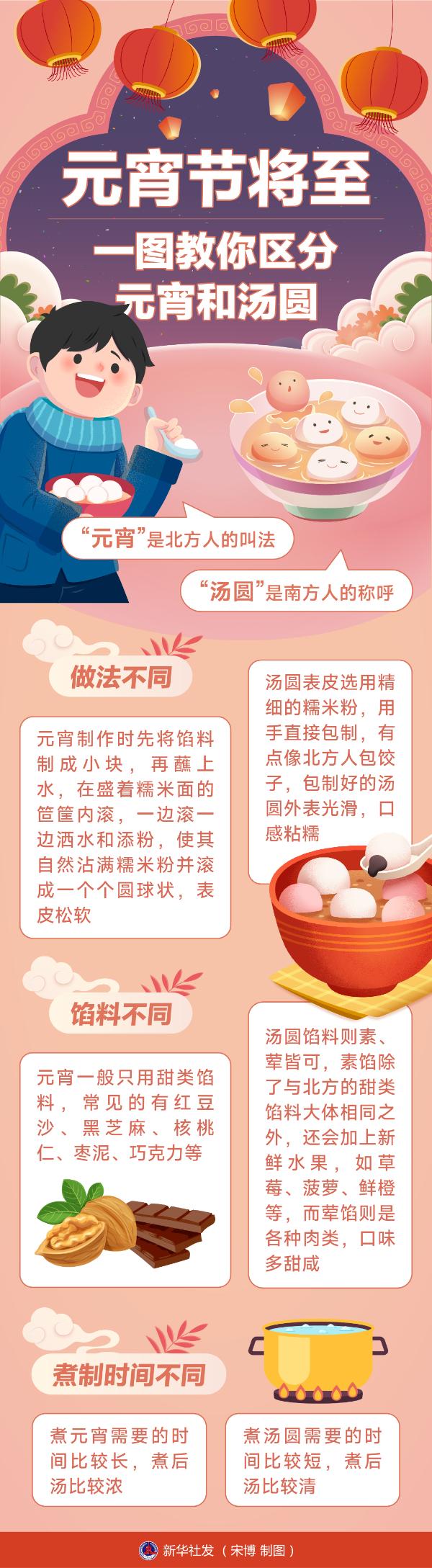 “元宵”是北方人的叫法,“湯圓”是南方人的稱呼,二者都是糯米粉制品,卻有著諸多不同。一圖教你區(qū)分元宵和湯圓。