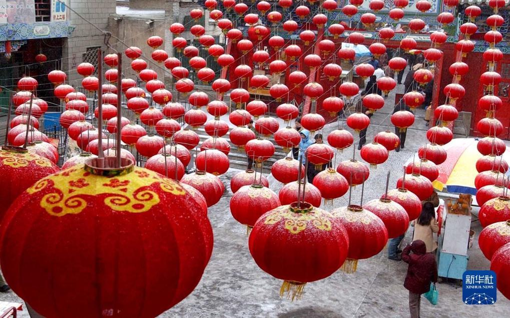 2019年2月19日,在新疆烏魯木齊大巴扎步行街,市民和游客品嘗元宵。新華社記者 王菲 攝