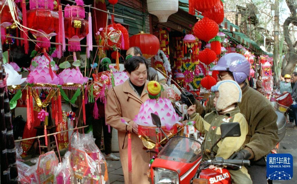 2000年元宵節(jié)前,人們?cè)诮K南京夫子廟廣場(chǎng)買(mǎi)花燈。 新華社記者 徐澎 攝