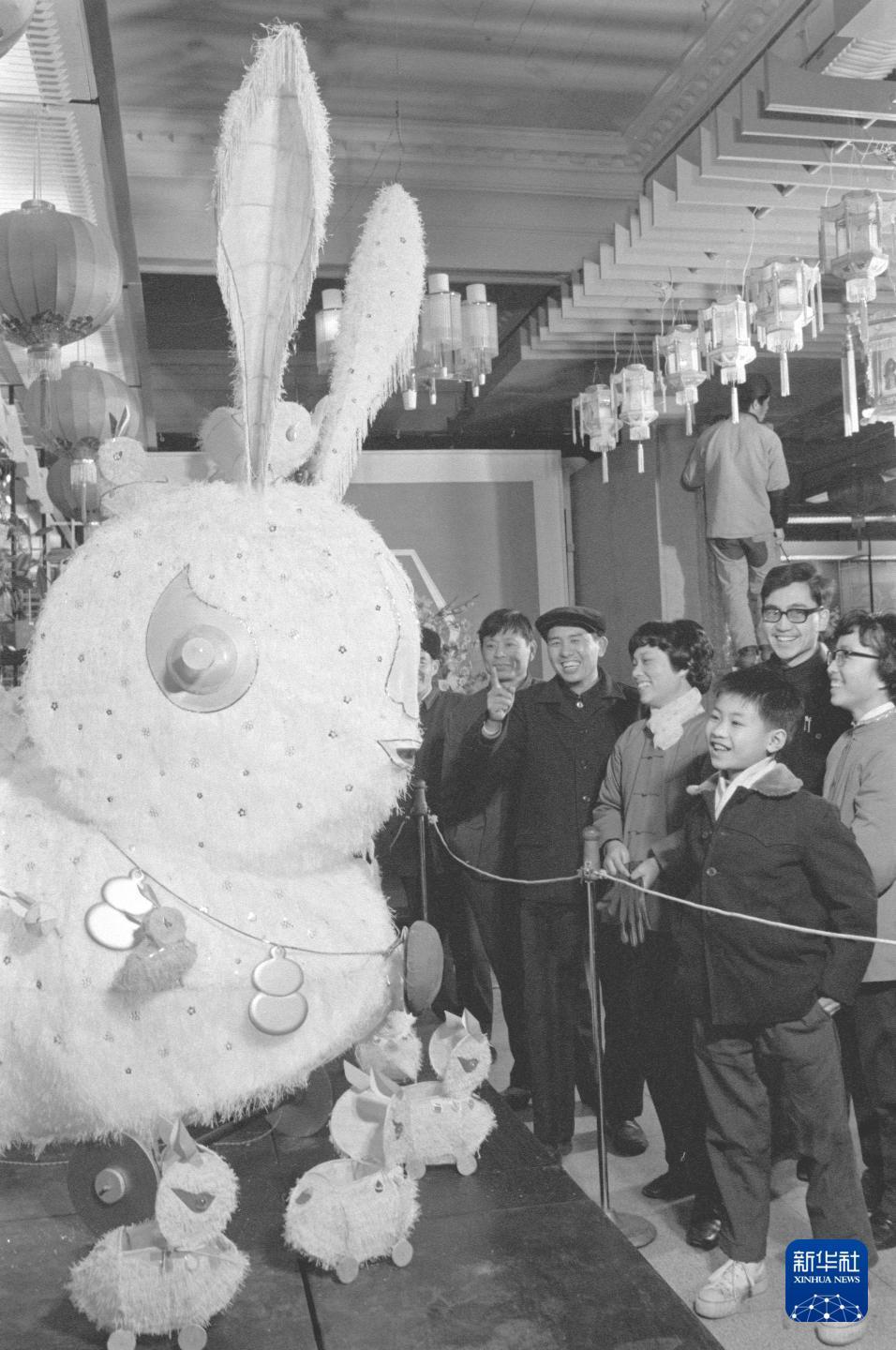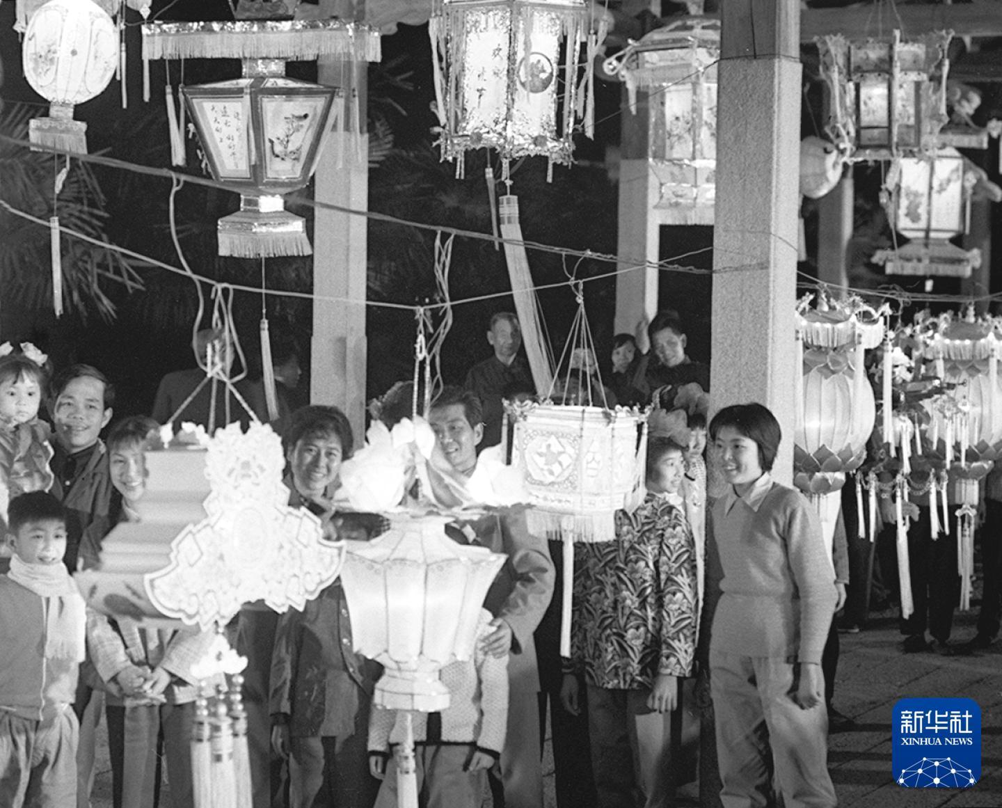 1979年元宵節(jié),人們?cè)诟=ㄈ萦^賞各式花燈。新華社發(fā)(黃必賢 攝)