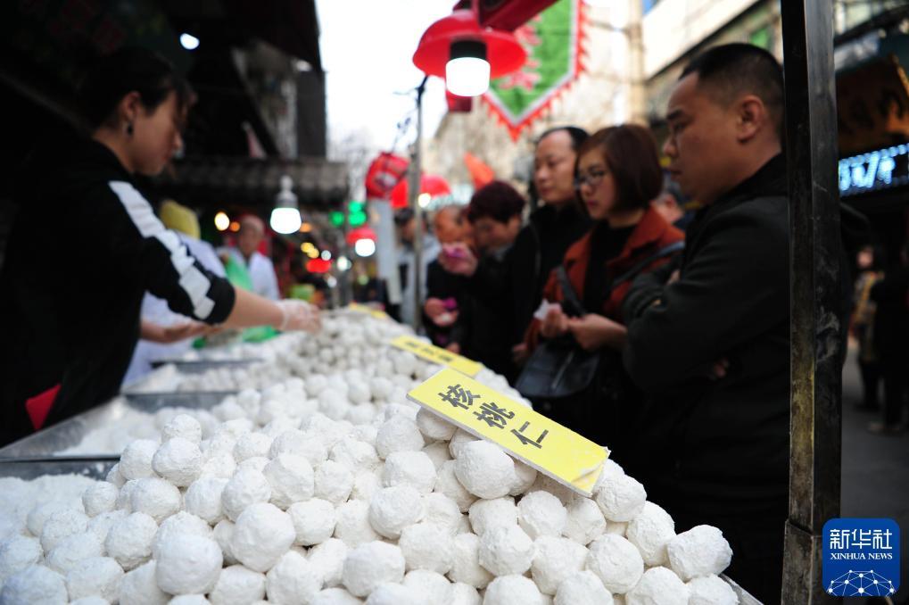 2018年3月1日,市民在西安市回民街一家店鋪外排隊(duì)購(gòu)買(mǎi)元宵。新華社發(fā) 張博文 攝