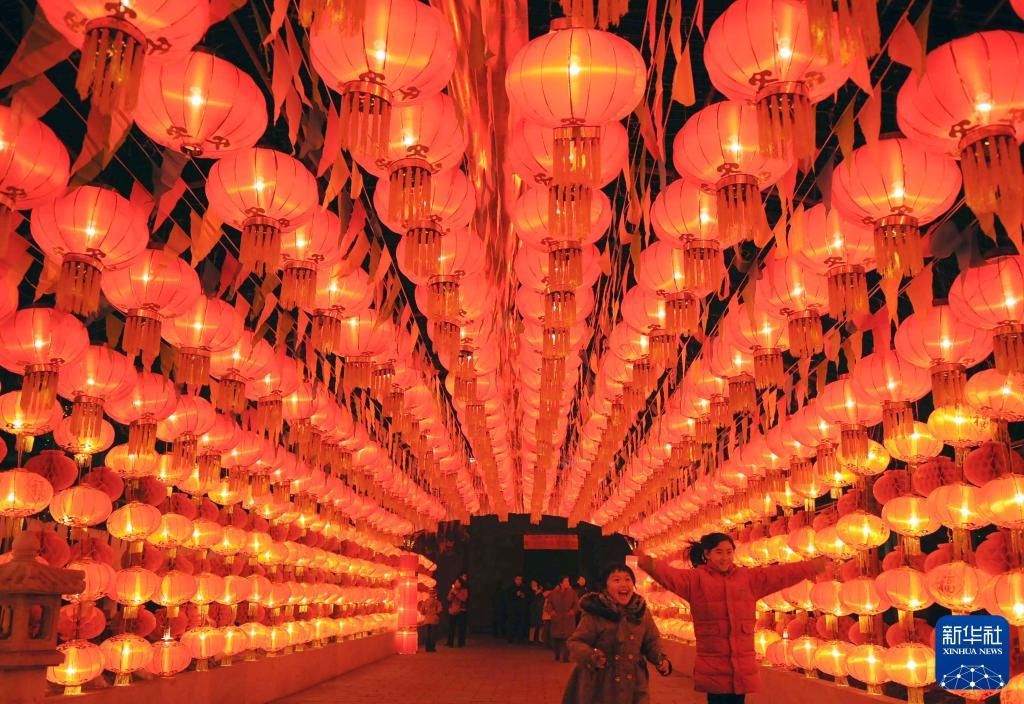 2016年2月22日,游客在武漢園博園觀賞彩燈。新華社記者 程敏 攝