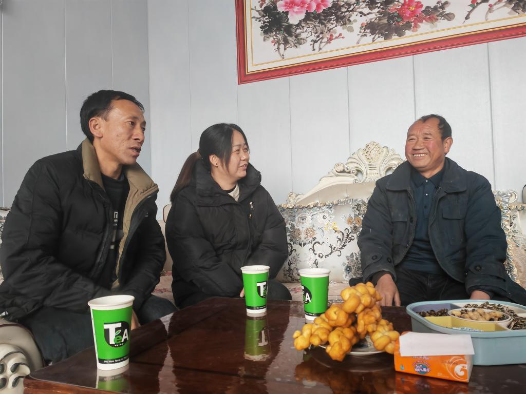 春節(jié)期間,白文英(左二)與趙永和(左一)在趙懷明(右一)家走訪。新華社記者 崔翰超 攝