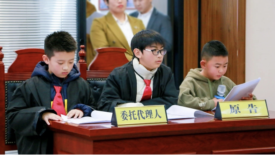 模擬法庭環(huán)節(jié),在“小法官”的主持下,“原告”“被告”雙方圍繞案件事實(shí)及爭(zhēng)議焦點(diǎn)開展了舉證質(zhì)證、相互發(fā)問、法庭辯論等,整個(gè)庭審過程莊重嚴(yán)肅、秩序井然,旁聽人員神情專注、認(rèn)真聆聽,小朋友們“沉浸式”參與了庭審全過程。在互動(dòng)環(huán)節(jié)中,孩子們積極發(fā)言,踴躍分享了自己的感悟與收獲,還提出許多與日常生活緊密相關(guān)的法律問題。