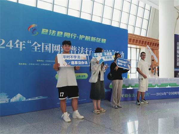 一是加強整體謀劃?!疤柮}”受眾所需,“靶向”制定中老鐵路沿線站點網(wǎng)絡普法總體方案,協(xié)同昆明、玉溪、普洱、西雙版納沿線站點結(jié)合自身實際,擬定氛圍營造子方案,形成中老鐵路沿線網(wǎng)絡普法工作合力。二是開展線下普法。以普法專列發(fā)車儀式為帶動,以沿線站點候車廳、站前廣場為重點,以大屏小屏互動、普法展板宣傳、網(wǎng)絡普法打卡、民族歌舞唱演等多樣形式開展網(wǎng)絡普法,提升“面對面”普法實效。其中,昆明南站設置網(wǎng)絡普法打卡裝置,吸引旅客打卡、拍照學法;普洱站利用進出站口電子大屏滾動播放《守護》《防范非法集資之快樂拉祜》等原創(chuàng)網(wǎng)絡普法短視頻和《網(wǎng)絡暴力何時休?法律為你來撐腰》等網(wǎng)絡普法動畫,營造“e路有法命運與共”的濃厚網(wǎng)絡普法氛圍;西雙版納州委網(wǎng)信辦組織檢察、公安、司法等在站前廣場設置宣傳展板區(qū)、文創(chuàng)展示區(qū),組織普法志愿者開展憲法、民法典、禁毒、反詐、交通安全等主題普法宣傳,融入生活場景的“親民”普法模式,有效提升普法向心力。
