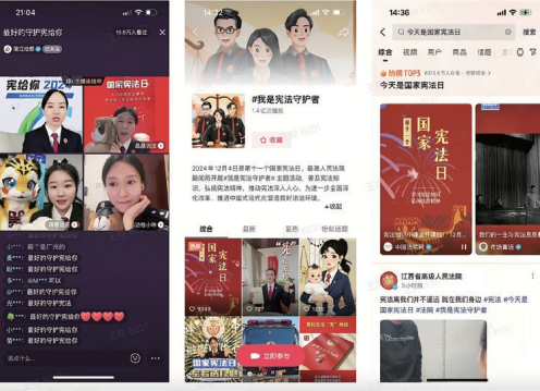 開展“12·4”國家憲法日大型傳播活動,調(diào)動平臺內(nèi)容熱點、內(nèi)容運營、內(nèi)容安全等團隊,設(shè)置多重主題,以活動征稿為核心,邀約創(chuàng)作者與平臺共創(chuàng)發(fā)布憲法日主題內(nèi)容。