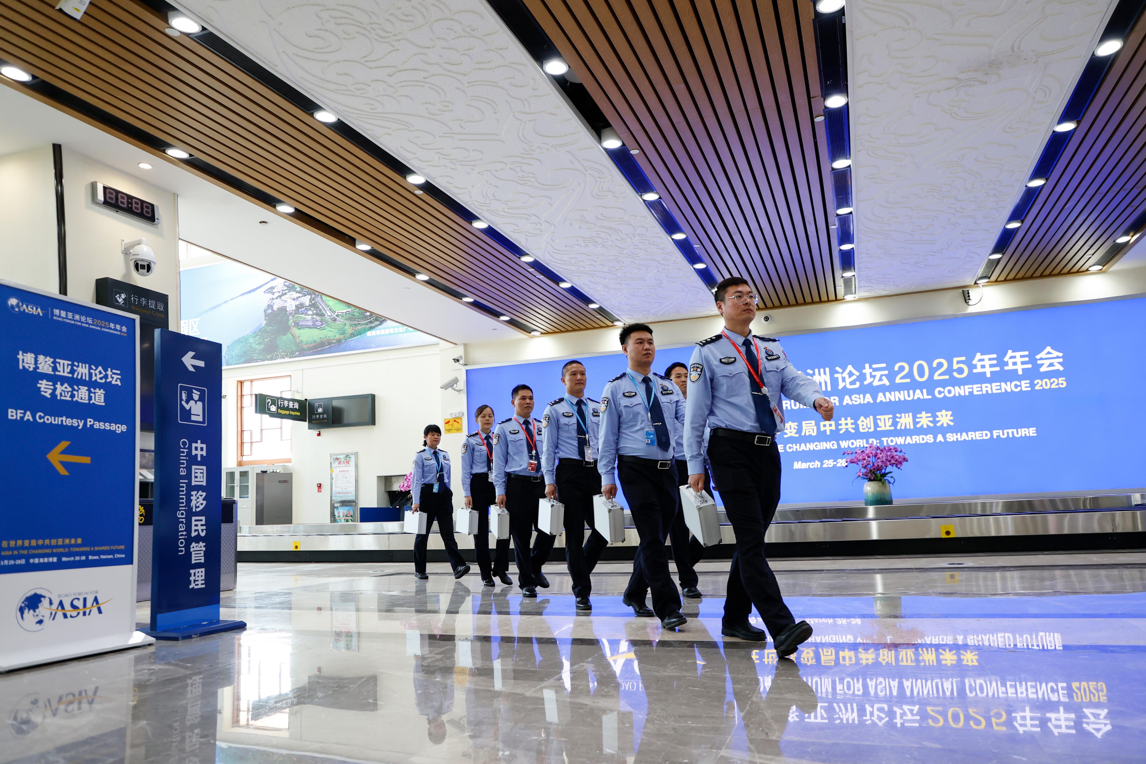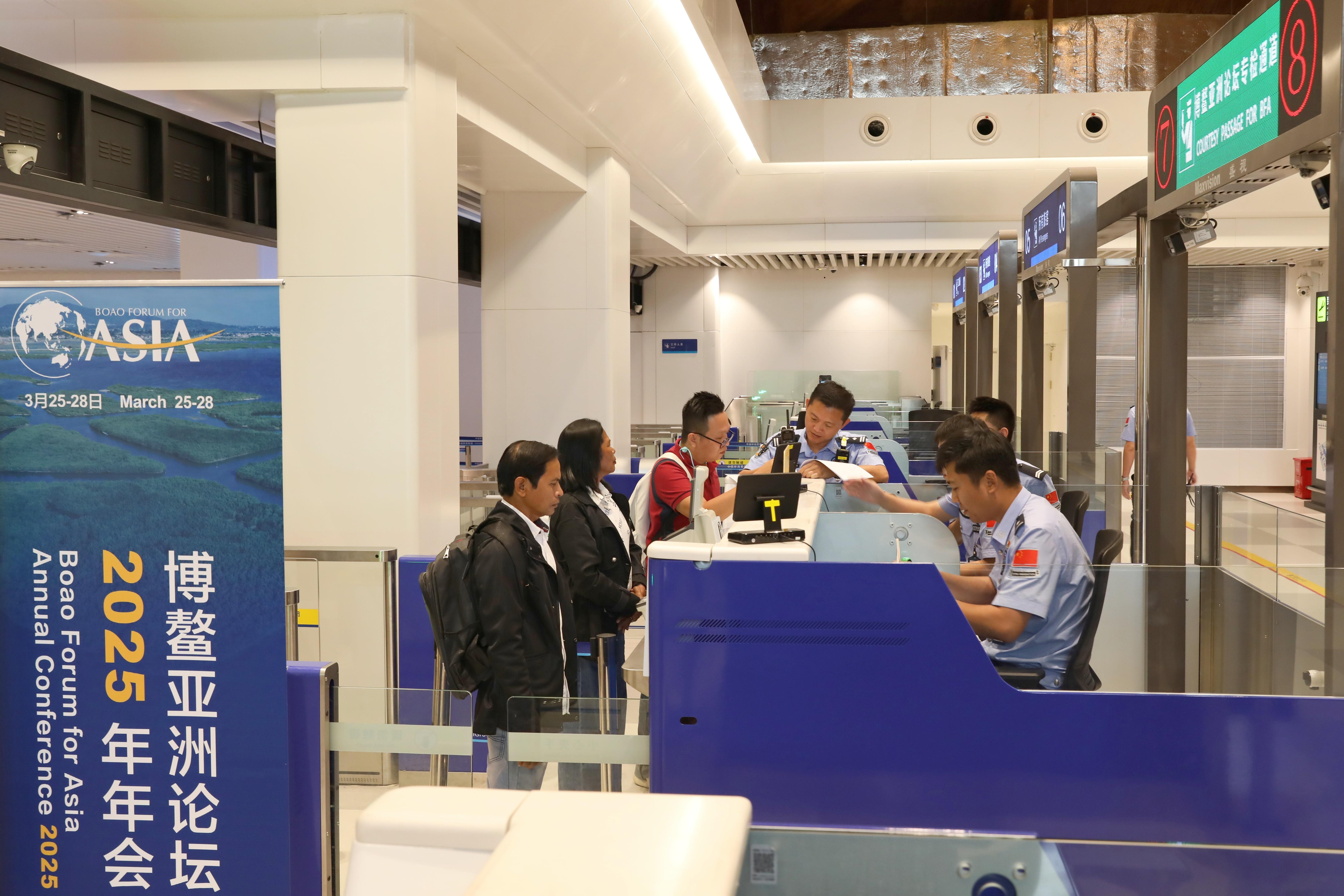 博鰲亞洲論壇2025年年會(huì)于3月25日至28日在海南博鰲舉行。自3月23日起,瓊海博鰲、??诿捞m、三亞鳳凰三大機(jī)場(chǎng)陸續(xù)迎來與會(huì)人員入境高峰,海南邊檢機(jī)關(guān)優(yōu)化勤務(wù)模式,主動(dòng)靠前服務(wù),努力為入境與會(huì)人員提供便捷高效的口岸通關(guān)保障。