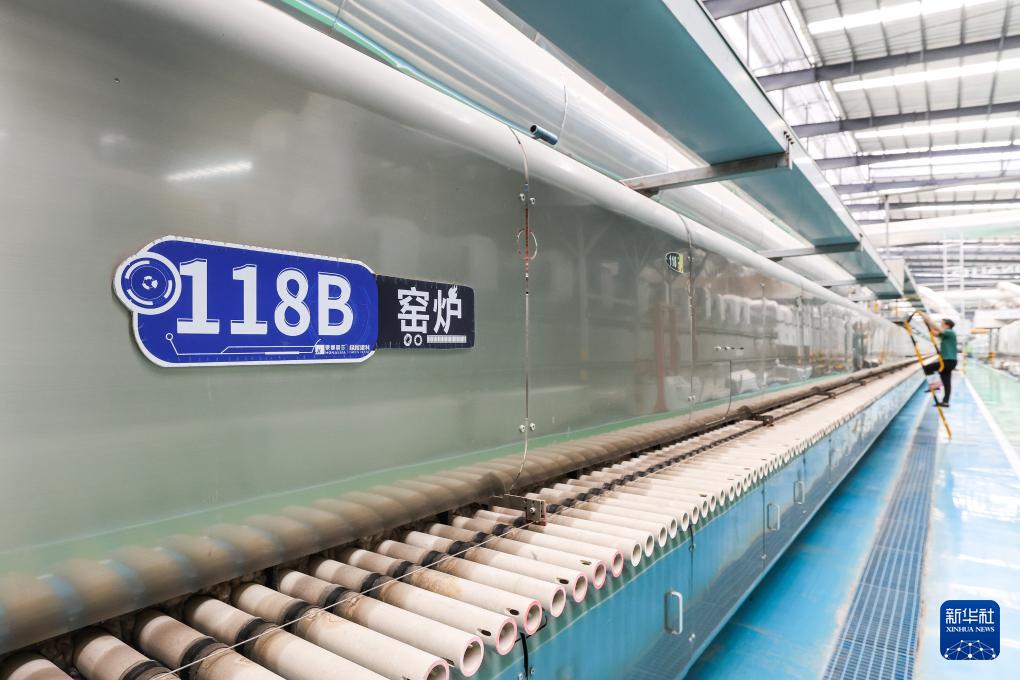 4月22日,工人在佛山蒙娜麗莎大尺寸陶瓷巖板自動生產(chǎn)線察看窯爐運(yùn)行狀態(tài)。