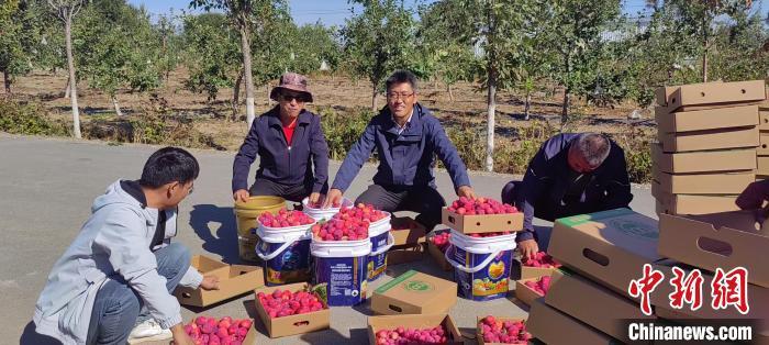 王志剛參與遼塔農(nóng)業(yè)科技示范園果樹品種采收、測(cè)產(chǎn)。 劉國(guó)宇 攝