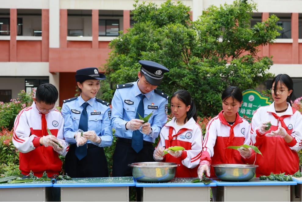 活動(dòng)現(xiàn)場,民警與學(xué)生們圍坐在一起,手把手教孩子們包粽子。“粽葉要折成漏斗狀,米不能放太多,就像法律給我們的保護(hù),既要周全也要適度?!泵窬贿吺痉?,一邊將民法典中與未成年人相關(guān)的條款融入講解。小小的粽子裹進(jìn)了防霸凌、防溺水的小貼士,孩子們?cè)隗w驗(yàn)傳統(tǒng)文化的同時(shí),潛移默化地學(xué)習(xí)了法律知識(shí)。