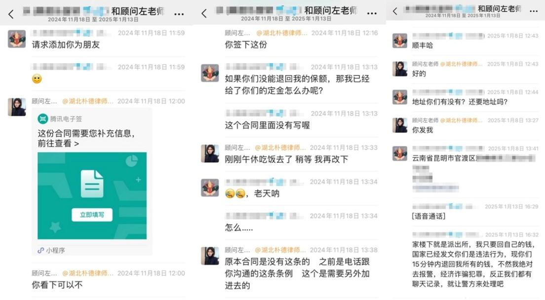 2024年12月,江西客戶S女士在網(wǎng)上看到一則“代理退保”的廣告,聲稱“全額退保,不成功不收費(fèi)”。因當(dāng)時(shí)經(jīng)濟(jì)壓力較大,并且缺乏對(duì)黑產(chǎn)中介的了解,S女士接觸了該所謂的“專業(yè)代理機(jī)構(gòu)”。在對(duì)方的誘導(dǎo)下,客戶以“銷售誤導(dǎo)”等虛假理由投訴保險(xiǎn)公司,要求全額退保,同時(shí)還向?qū)Ψ街Ц读?800元作為“定金”。然而后續(xù)幾天,S女士始終沒有等到對(duì)方的消息。