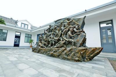 青口十八勇士紀(jì)念館內(nèi),十八勇士作為主題的雕塑。連云港市贛榆區(qū)委宣傳部供圖