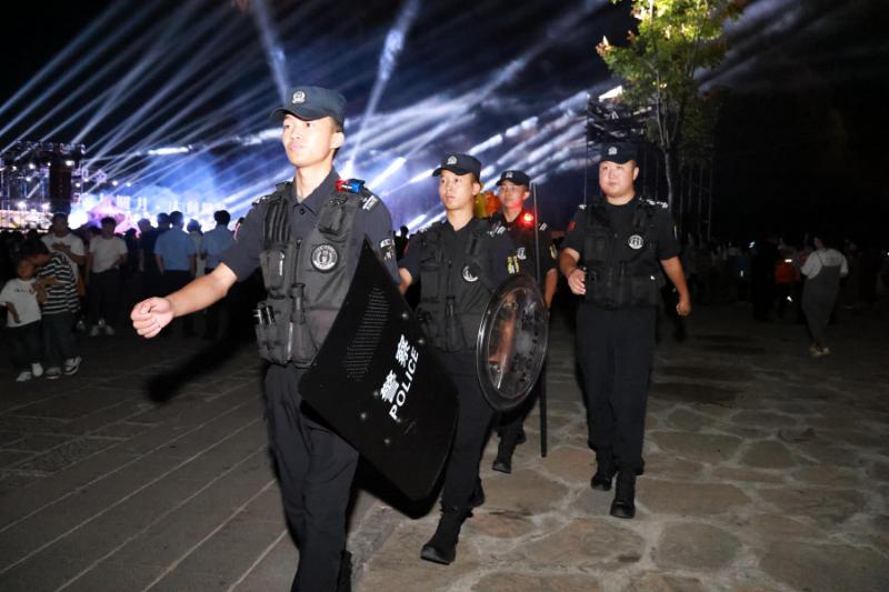 夜幕降臨,華燈點(diǎn)亮貫城河,平遠(yuǎn)古鎮(zhèn)與大府頭廣場游人如織。裝備齊整的民警、英姿颯爽的特警,成為熙攘人潮中最安心的存在。“我們必須常態(tài)化巡邏,確保群眾第一時(shí)間能找到警察?!彪p堰派出所民警余莎的話語,道出了“流動(dòng)管家”的日常。