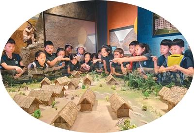 “古蜀尋春季”研學(xué)活動(dòng)現(xiàn)場(chǎng),孩子們參觀寶墩遺址博物館。 成都市新津區(qū)文廣體旅局供圖