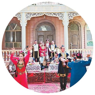 其中的吐魯番木卡姆節(jié)奏歡快、內(nèi)容豐富,唱詞多隨民歌、詩歌而來,是多年來人們對生活經(jīng)驗、文學藝術(shù)等的積累?!巴卖敺究窡o鼓不歌、無舞不樂的藝術(shù)特色是古代高昌及高昌回鶻汗國的音樂遺風,而魯克沁鎮(zhèn)正是吐魯番木卡姆的重要發(fā)源地。”依力·木合買提介紹。