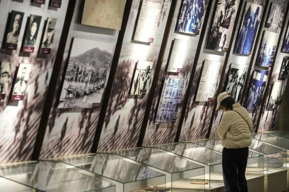 參觀者在遼沈戰(zhàn)役紀(jì)念館內(nèi)參觀(4月1日攝)。遼沈戰(zhàn)役紀(jì)念館收藏了穆青同志采寫的《東北抗日聯(lián)軍斗爭(zhēng)史略》。新華社記者潘昱龍攝