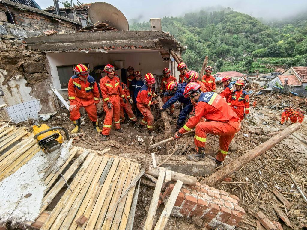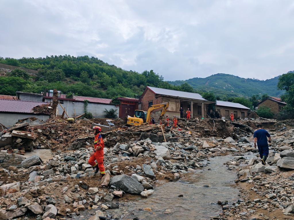 在朱家峪村開展救援的消防隊(duì)員。新華社記者 邵魯文 攝