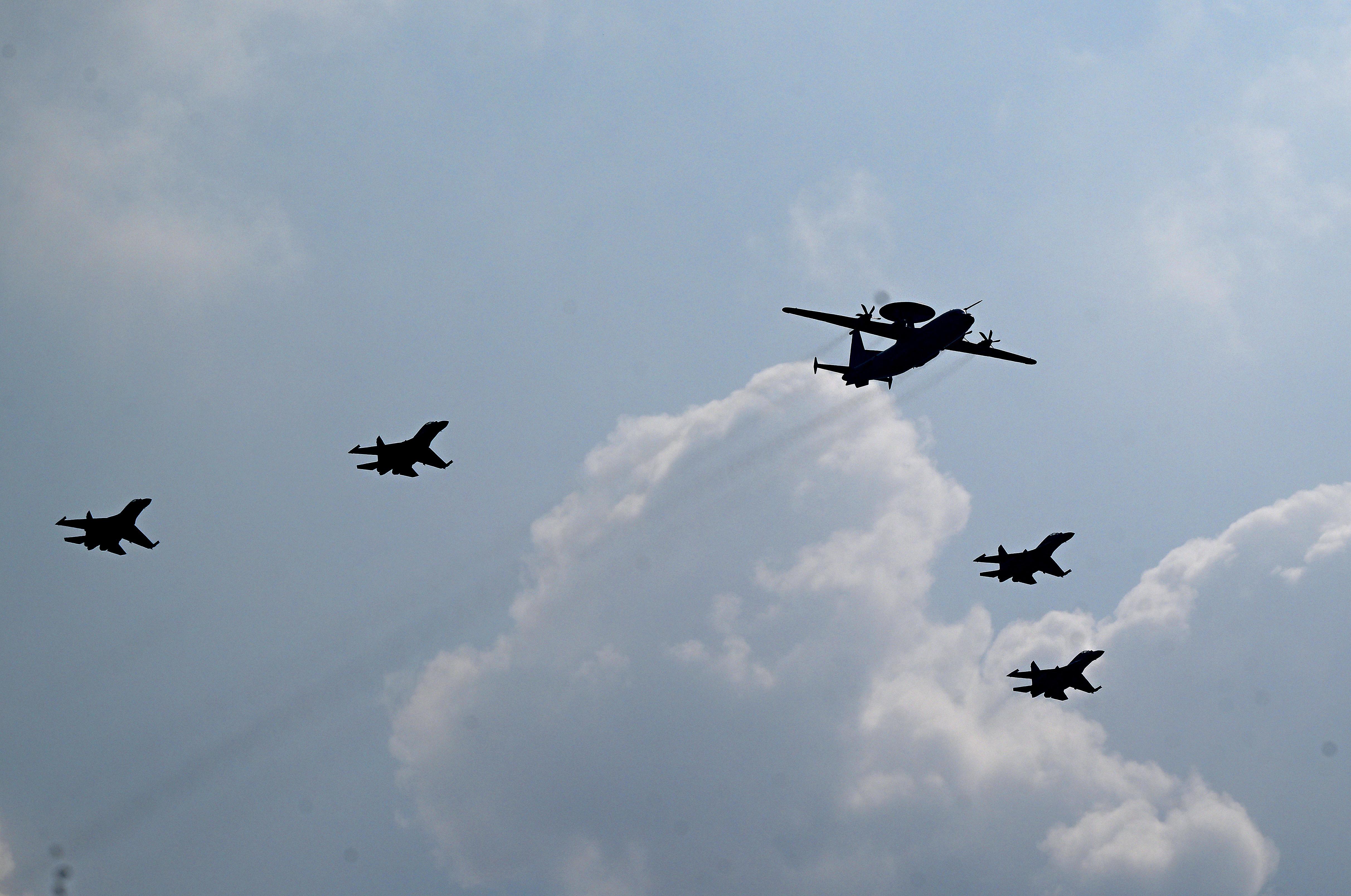 預警指揮機梯隊接受檢閱。 本報記者 楊晉峰 攝