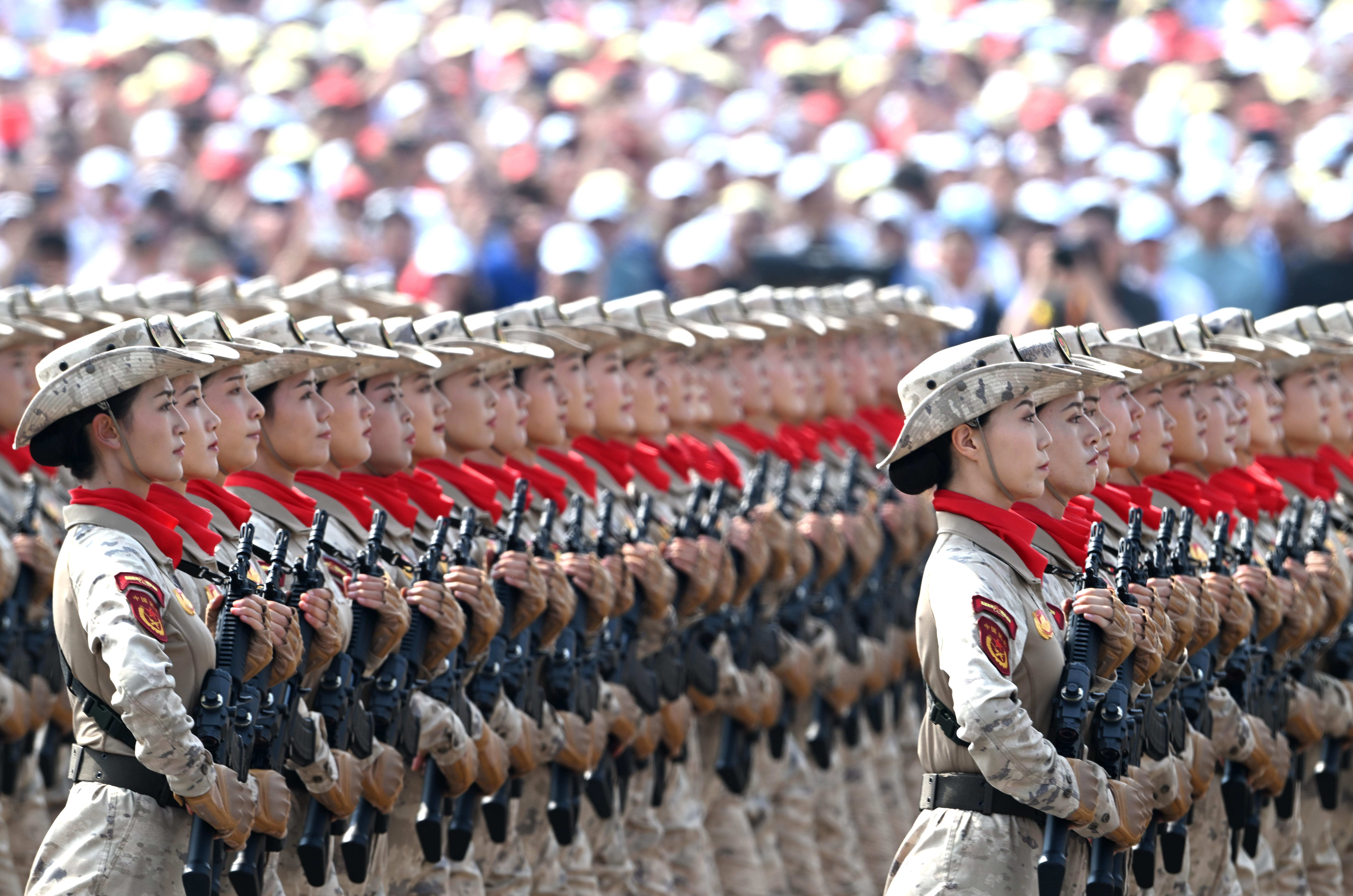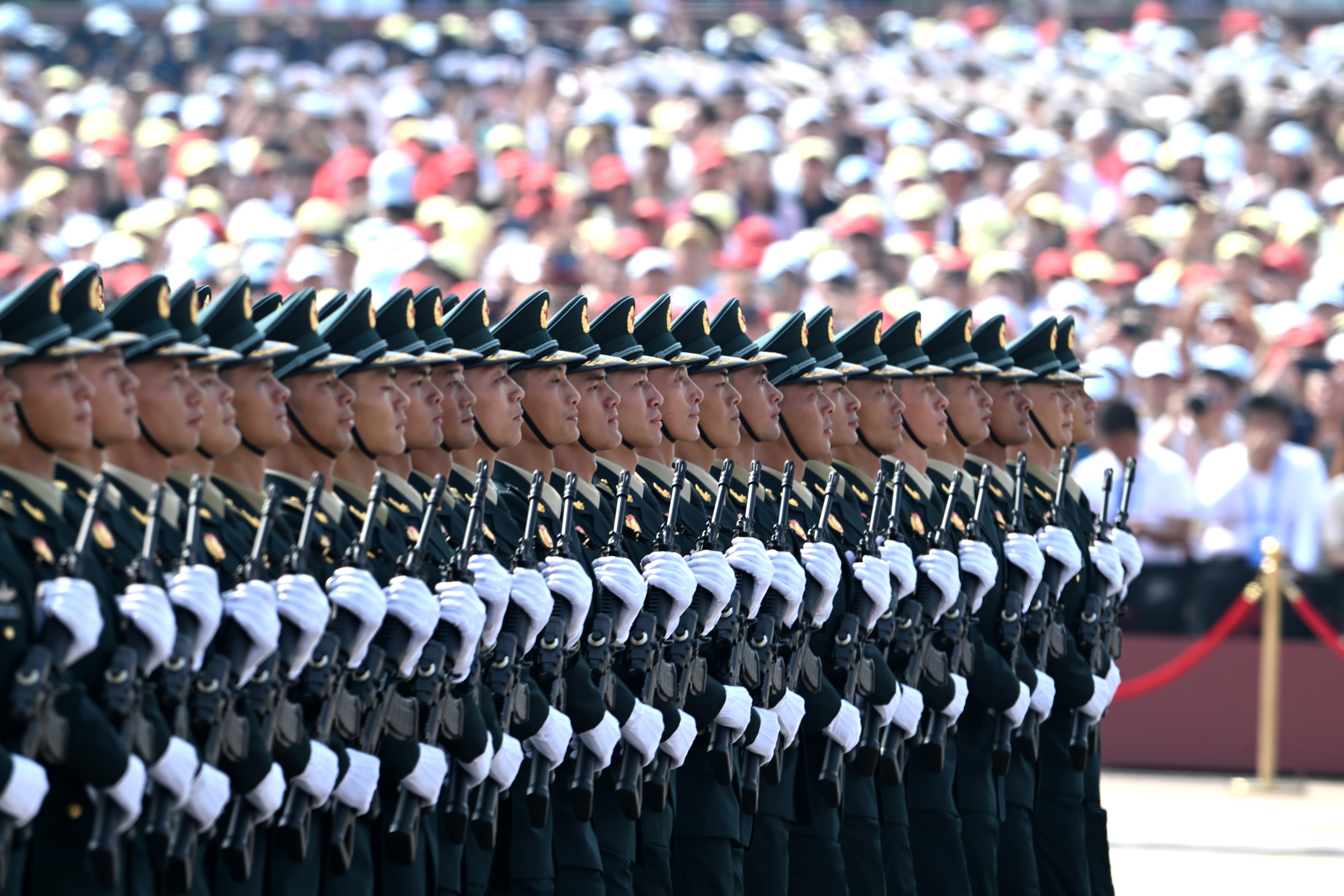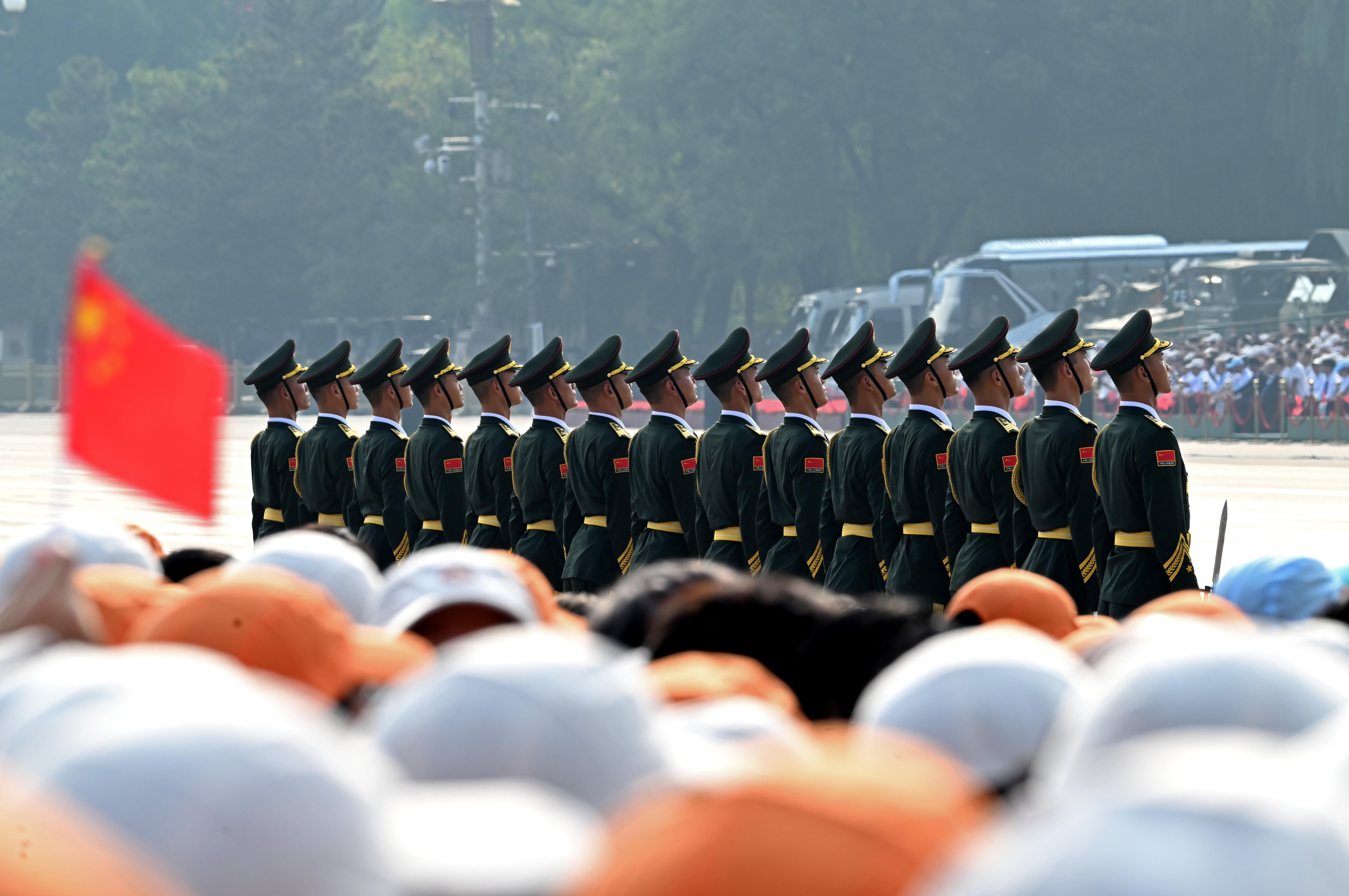 中國(guó)人民解放軍儀仗方隊(duì)接受檢閱。