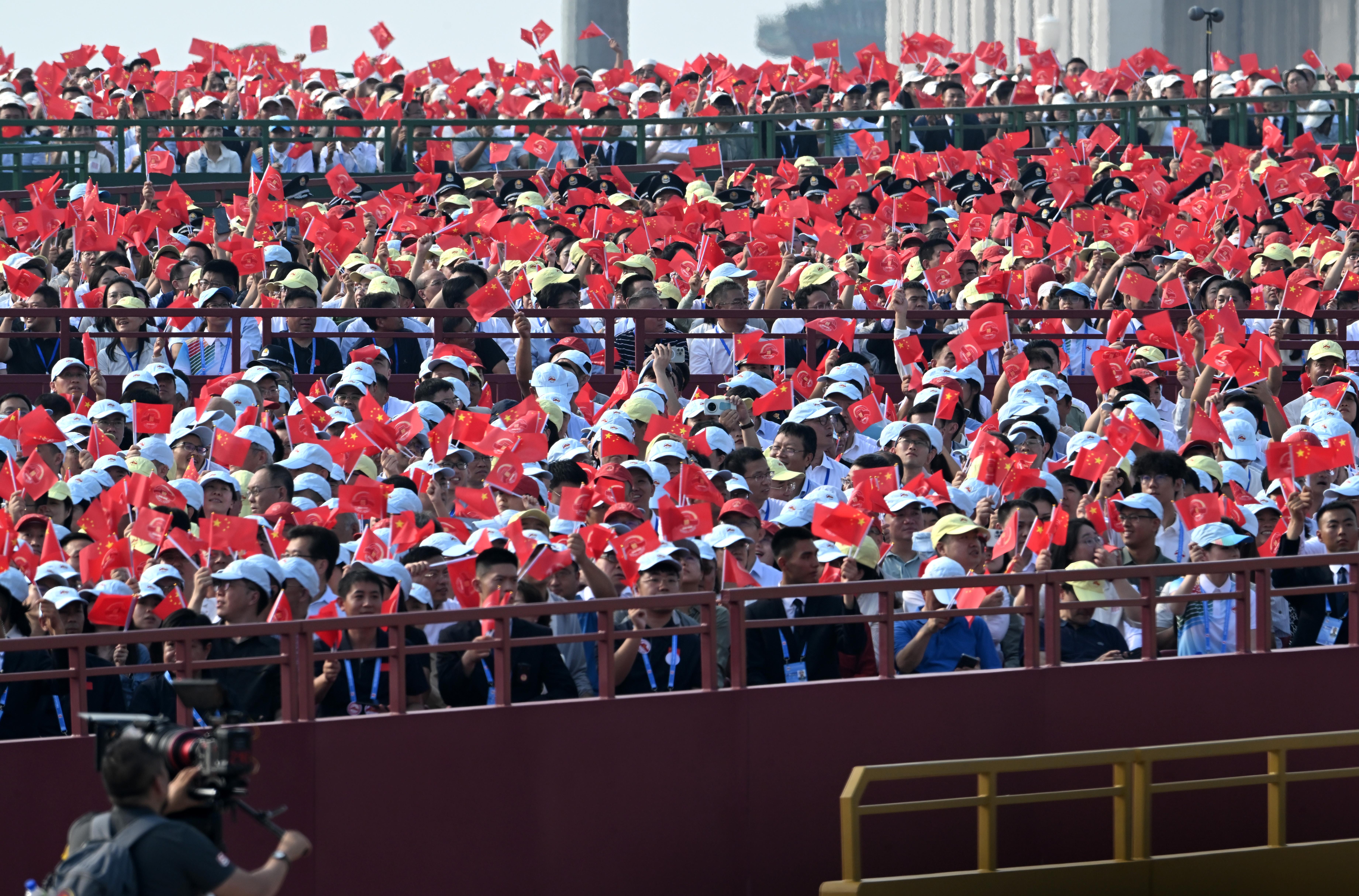 9月3日,紀(jì)念中國(guó)人民抗日戰(zhàn)爭(zhēng)暨世界反法西斯戰(zhàn)爭(zhēng)勝利80周年閱兵式在北京隆重舉行。這是天安門(mén)廣場(chǎng)舉行升國(guó)旗儀式。