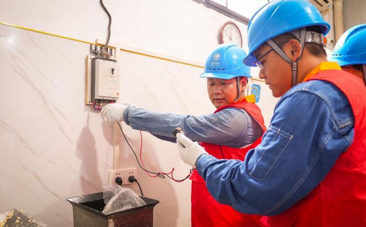 濉溪縣供電公司黨員服務(wù)隊正在幫助店主檢查用電安全隱患。儲運濤攝