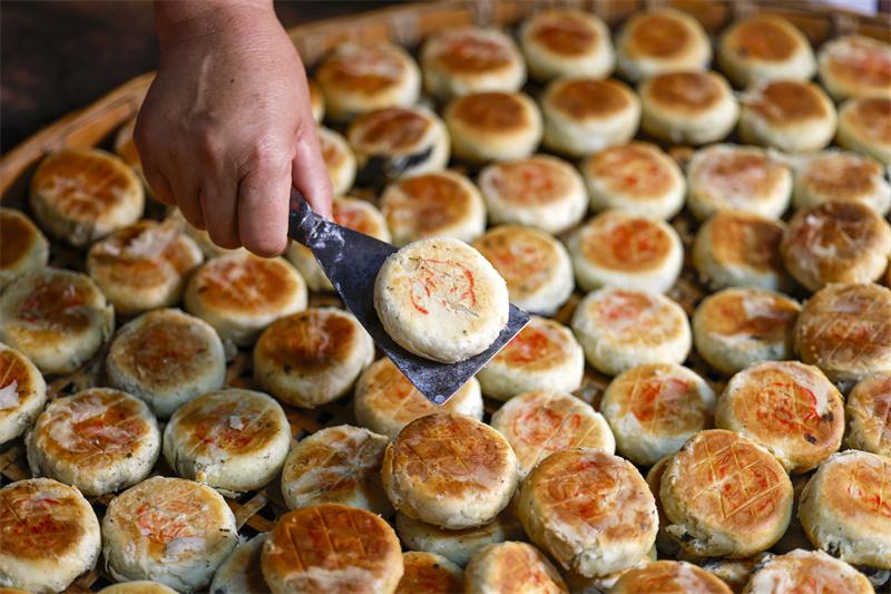 臨近中秋,在有著1700多年歷史的安徽省休寧縣萬安老街內(nèi),制餅師傅經(jīng)過“制油酥、搟面皮、包餡、固形、蓋印和烘烤”等多道工序后,制作出外酥里糯、口感鮮美的“徽式麻仁月餅”,作為古徽州中秋佳節(jié)傳統(tǒng)糕點(diǎn),深受百姓喜愛。