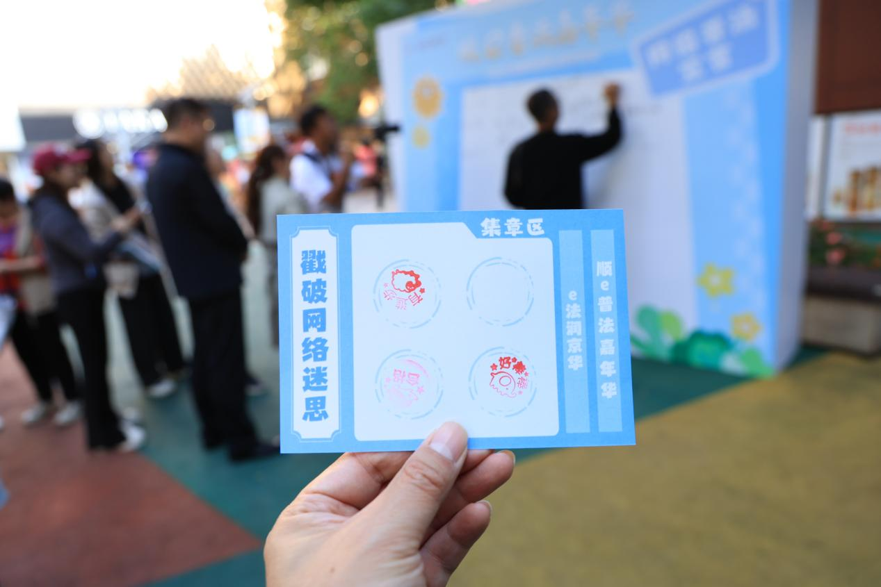 10月14日,“順e普法嘉年華”網(wǎng)絡普法活動在北京市順義區(qū)祥云小鎮(zhèn)文旅街區(qū)啟幕?!熬W(wǎng)購維權小屋”前,市民們正駐足答題;“法治飛行棋”區(qū)域內(nèi),游客們圍在彩色棋盤旁躍躍欲試。這場將網(wǎng)絡普法融入休閑生活的特色活動,讓法治知識悄然傳播。