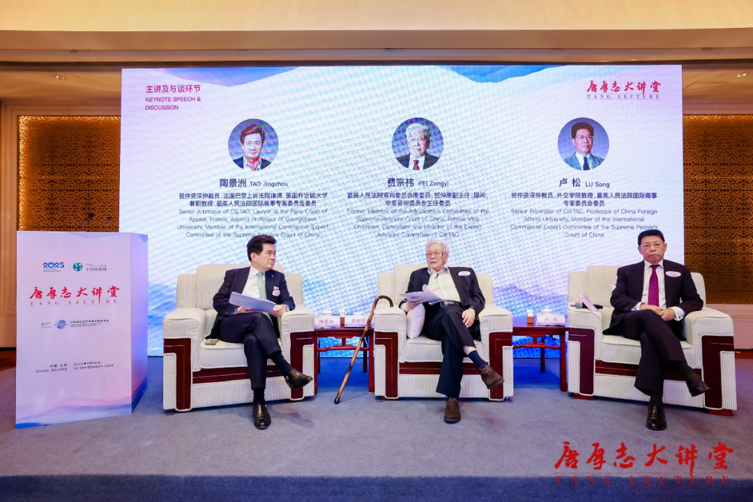 9月16日,由中國(guó)國(guó)際經(jīng)濟(jì)貿(mào)易仲裁委員會(huì)(簡(jiǎn)稱(chēng)“貿(mào)仲”)主辦的第九屆“唐厚志大講堂”作為中國(guó)仲裁周重點(diǎn)活動(dòng)之一在京舉行。最高人民法院審判委員會(huì)原委員,中國(guó)國(guó)際經(jīng)濟(jì)貿(mào)易仲裁委員會(huì)原副主任、顧問(wèn)、專(zhuān)家咨詢(xún)委員會(huì)主任委員費(fèi)宗祎教授以“中國(guó)商事仲裁的發(fā)展與展望”為題作主題演講。貿(mào)仲資深仲裁員、法國(guó)巴黎上訴法院律師、美國(guó)喬治城大學(xué)兼職教授、最高人民法院國(guó)際商事專(zhuān)家委員會(huì)委員陶景洲先生,貿(mào)仲資深仲裁員、外交學(xué)院教授、最高人民法院國(guó)際商事專(zhuān)家委員會(huì)委員盧松先生進(jìn)行與談。貿(mào)仲副主任兼秘書(shū)長(zhǎng)王承杰主持本場(chǎng)活動(dòng)并致辭。來(lái)自全球30個(gè)國(guó)家和地區(qū)的仲裁機(jī)構(gòu)負(fù)責(zé)人、仲裁員、律師、學(xué)者及工商界人士等近300名海內(nèi)外嘉賓現(xiàn)場(chǎng)參與,超過(guò)3000人次線(xiàn)上收看直播。