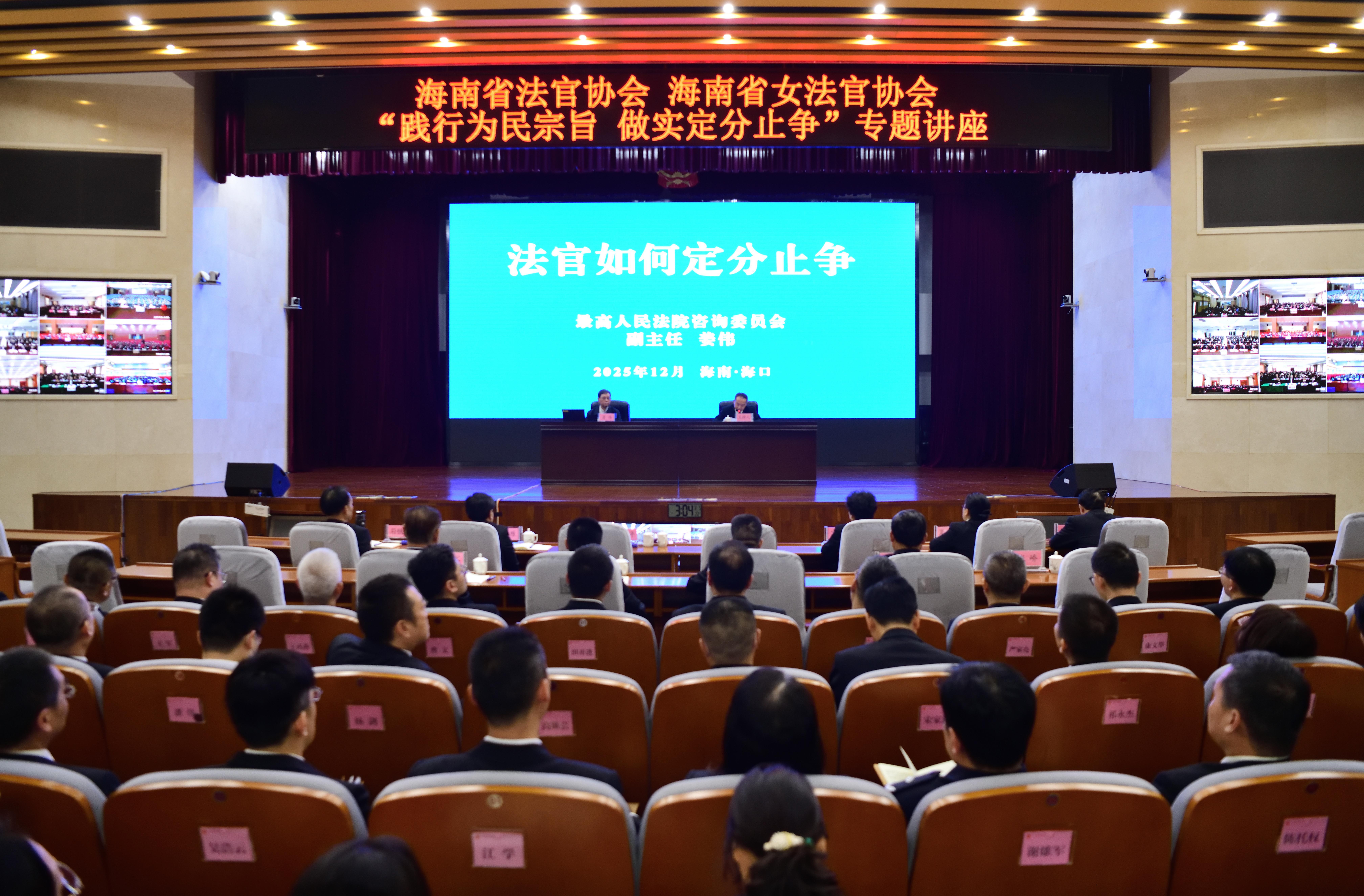研討會和專題講座由海南省高院黨組副書記、副院長陳文平主持。海南省高院全體院領導和相關部門負責人,中基層法院院長,海南省法官協(xié)會、海南省女法官協(xié)會常務理事參加研討會;全省法院干警參加專題講座。