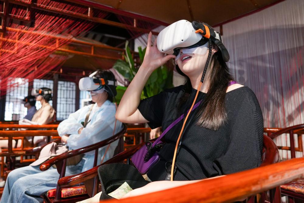 2025年5月18日,游客在江蘇蘇州拙政園體驗VR漫游。近年來,蘇州不斷推進(jìn)“數(shù)字園林”建設(shè),在園林整體數(shù)字建模、園林要素數(shù)據(jù)庫建設(shè)、園林“元宇宙”應(yīng)用場景開發(fā)等方面進(jìn)行探索,加快推動“數(shù)字園林”成果全民共享。