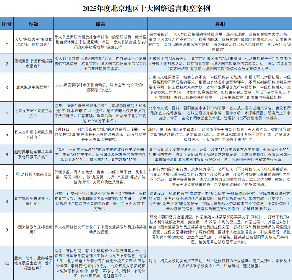 警示!2025年度北京十大網(wǎng)絡(luò)謠言典型案例全拆解