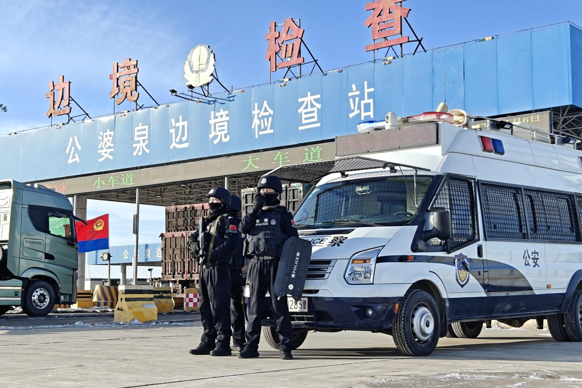 春運(yùn)期間,公婆泉邊境檢查站的民警冒著嚴(yán)寒開(kāi)展執(zhí)勤工作。