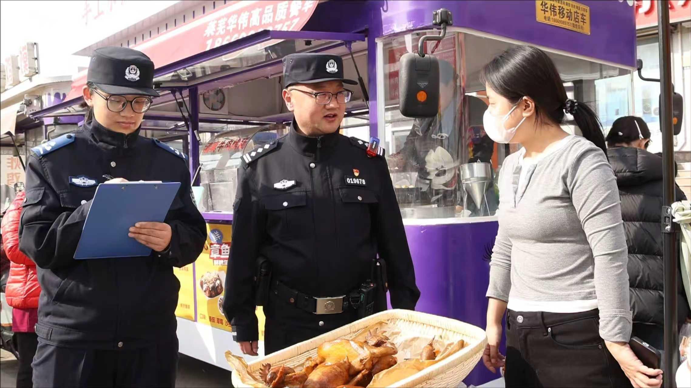 10點(diǎn)40分,記者走出調(diào)解室,看到郭店派出所副所長(zhǎng)康元科正整理裝備準(zhǔn)備帶領(lǐng)民輔警到郭店大集巡邏。“今天是郭店街道年末最后一個(gè)大集,周邊村民都趁機(jī)集中置辦年貨,人流量大、人員密集,安全防范絕不能松勁?!笨翟平榻B,在今天早上的班前會(huì)上,派出所已將大集巡邏安保列為重點(diǎn)工作,專門部署警力,采取車巡、步巡相結(jié)合的方式,加密巡邏頻次、緊盯重點(diǎn)區(qū)域,做好防盜防騙防糾紛工作,讓群眾趕集趕得放心、購得安心。