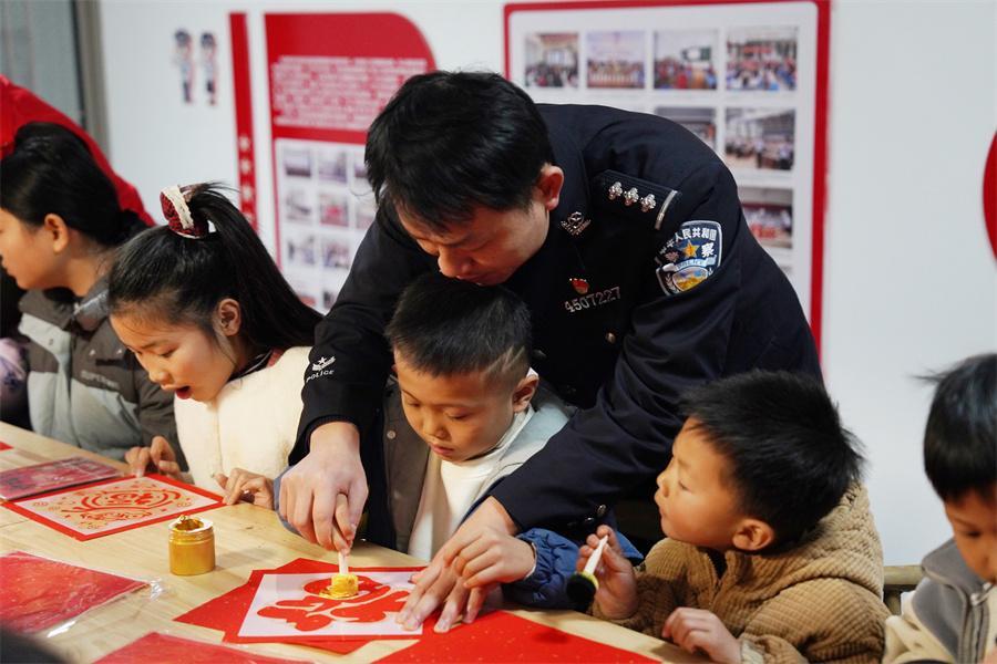 圖為監(jiān)獄警察與孩子們共同畫年畫。陳帥 攝