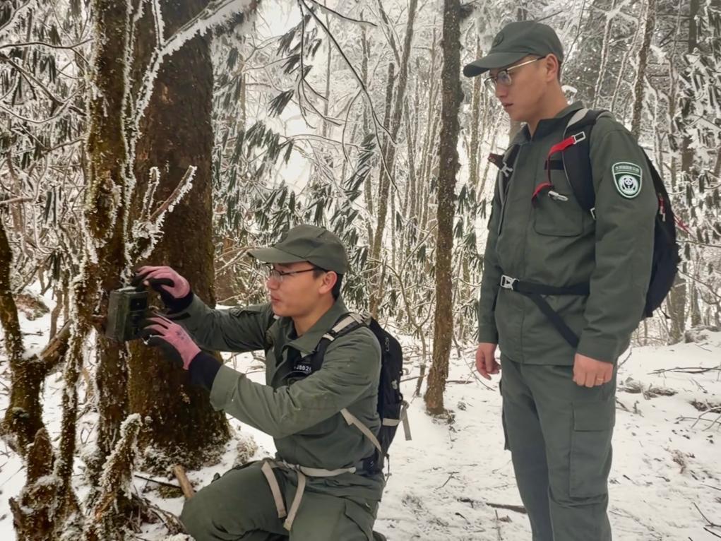 雖已立春,大熊貓國(guó)家公園滎經(jīng)片區(qū)依然大雪紛飛。記者從四川雅安滎經(jīng)縣城出發(fā)前往大相嶺,山下天還晴著,車拐進(jìn)山路,霧就從溝谷里漫上來(lái);再往上,細(xì)雨打著樹枝上的冰棱,把山路潤(rùn)得發(fā)亮。到了大相嶺自然保護(hù)區(qū)管護(hù)中心,車窗外已是白茫茫一片,氣溫低至零下。