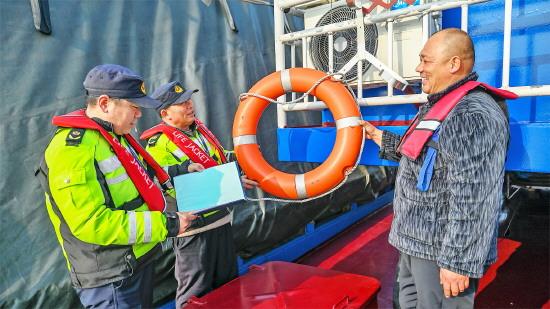 80分鐘的水上航程,寒風(fēng)裹著濕氣撲面而來,乘船是抵達(dá)這里的唯一方式??焱Э堪逗螅R浪崗交通執(zhí)法中隊(duì)黨支部書記孫成斌就迎了上來,黝黑的臉上帶著笑意。