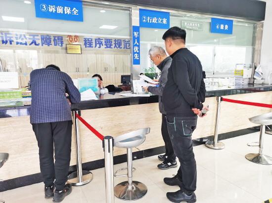 說話間,他已經(jīng)趕到訴訟服務(wù)中心窗口前,兩名中年男子手拿立案材料等在那里。這是一起建筑領(lǐng)域租賃糾紛,原告在提起訴訟的同時(shí)申請(qǐng)對(duì)被告銀行賬號(hào)進(jìn)行財(cái)產(chǎn)保全。