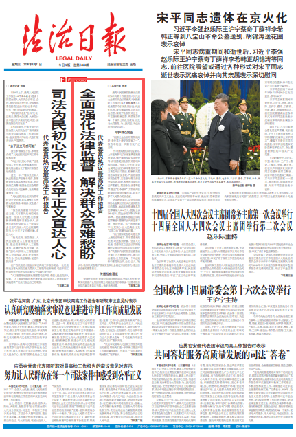 全國政協(xié)委員、北京德恒(石家莊)律師事務(wù)所負責人齊明亮說:“過去一年,檢察機關(guān)全面履行刑事、民事、行政、公益訴訟四大檢察職能,依法嚴厲打擊各類刑事犯罪,全力維護社會安全穩(wěn)定。堅持高質(zhì)效辦好每一起案件,在服務(wù)經(jīng)濟發(fā)展、規(guī)范趨利性執(zhí)法、營造法治化營商環(huán)境上持續(xù)發(fā)力,切實保護各類市場主體合法權(quán)益。始終堅守司法為民初心,重點維護老年人、婦女兒童、殘疾人等重點群體合法權(quán)益,用心用情解決群眾急難愁盼,讓人民群眾切實感受到司法溫度?!?/p>