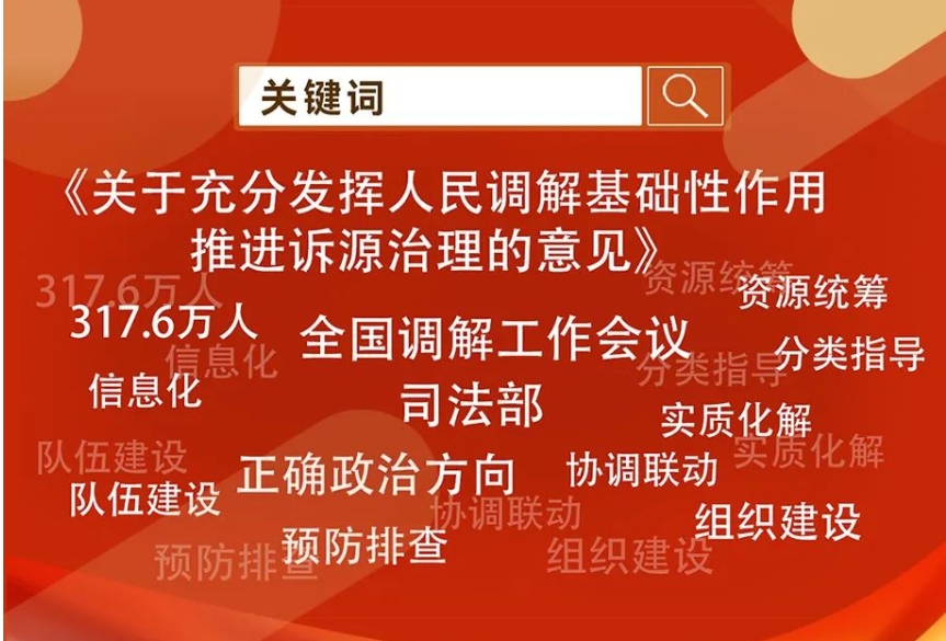 調(diào)解是具有中國特色的化解矛盾、消除紛爭、促進和諧的非訴訟糾紛解決方式,被國際社會譽為“東方經(jīng)驗”“東方之花”。為堅持和發(fā)展“楓橋經(jīng)驗”,充分發(fā)揮調(diào)解維護社會和諧穩(wěn)定“第一道防線”作用 ……【詳細(xì)】