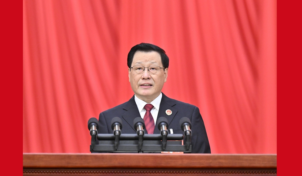 受全國人大常委會委托,趙樂際委員長向大會報告全國人大常委會工作……
