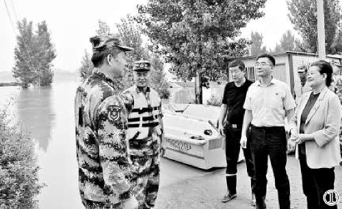 我們直接來到區(qū)委設(shè)在李莊的臨時(shí)指揮部,看到河水淹過李店橋、漫過生產(chǎn)堤,還在緩緩上漲,造成大片農(nóng)田被淹,道路被沖毀。幾乎兩天兩夜沒有合眼的區(qū)委書記王彥濤簡(jiǎn)單介紹了搶險(xiǎn)情況,“昨天已經(jīng)征調(diào)全市公交車輛將賈魯河兩岸可能被淹的6個(gè)村莊3492戶12111人全部轉(zhuǎn)移安置到安全地帶,目前祥符區(qū)無一人被困和傷亡。”我向王彥濤書記表態(tài),我們檢察干警參加抗洪搶險(xiǎn)的隊(duì)伍隨時(shí)集結(jié)、隨時(shí)聽從調(diào)遣。