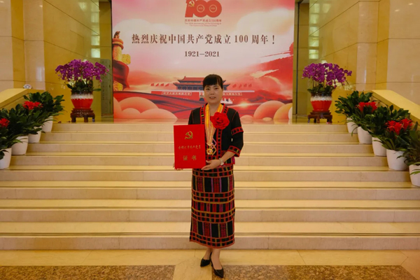 今年“七一”前夕,符小琴獲得“全國優(yōu)秀共產(chǎn)黨員”榮譽稱號,在北京接受表彰。(代表供圖)