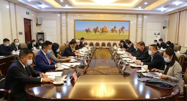 那順孟和同列席自治區(qū)十三屆人大常委會第三十一次會議的自治區(qū)人大代表進行座談交流。