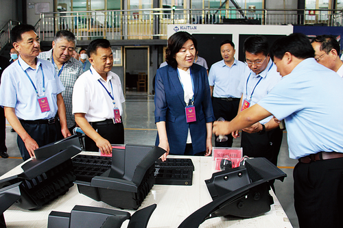 圖為視察組在臨朐縣大地汽車(chē)零部件有限公司年產(chǎn)30萬(wàn)套長(zhǎng)玻纖以塑代鋼塑料件項(xiàng)目現(xiàn)場(chǎng)實(shí)地察看。 王剛 攝