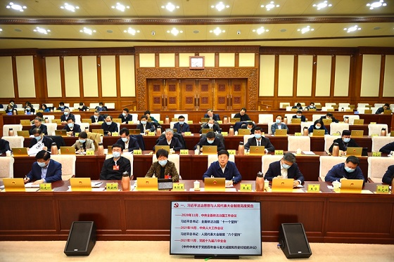 王良在主持時(shí)指出,習(xí)近平法治思想是順應(yīng)實(shí)現(xiàn)中華民族偉大復(fù)興時(shí)代要求應(yīng)運(yùn)而生的重大理論創(chuàng)新成果,是馬克思主義法治理論中國化最新成果,是習(xí)近平新時(shí)代中國特色社會主義思想的重要組成部分,是全面依法治國的根本遵循和行動(dòng)指南。要在深入學(xué)習(xí)貫徹習(xí)近平法治思想上下功夫求實(shí)效,與深入學(xué)習(xí)貫徹黨的十九屆六中全會精神結(jié)合起來,與深入學(xué)習(xí)貫徹習(xí)近平總書記關(guān)于堅(jiān)持和完善人民代表大會制度的重要思想和中央人大工作會議精神結(jié)合起來,與深入學(xué)習(xí)貫徹習(xí)近平總書記對山東重要指示要求結(jié)合起來,與全面貫徹落實(shí)省委十一屆十四次全體會議精神結(jié)合起來,堅(jiān)持黨對人大工作的全面領(lǐng)導(dǎo),不斷提高政治判斷力、政治領(lǐng)悟力、政治執(zhí)行力。要切實(shí)把學(xué)習(xí)成效轉(zhuǎn)化為做好人大工作的實(shí)際行動(dòng),在知行合一中擔(dān)當(dāng)作為,以強(qiáng)烈的責(zé)任感使命感扎實(shí)做好立法、監(jiān)督、普法宣傳等各項(xiàng)工作,努力為法治山東建設(shè)作出人大貢獻(xiàn)。