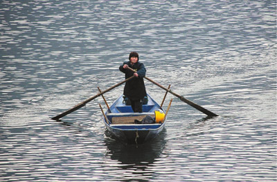 趙明翠購買了一只小船,每次要?jiǎng)澬幸粋€(gè)多小時(shí)將郵件送到漢江對(duì)岸4個(gè)村的用戶手中。